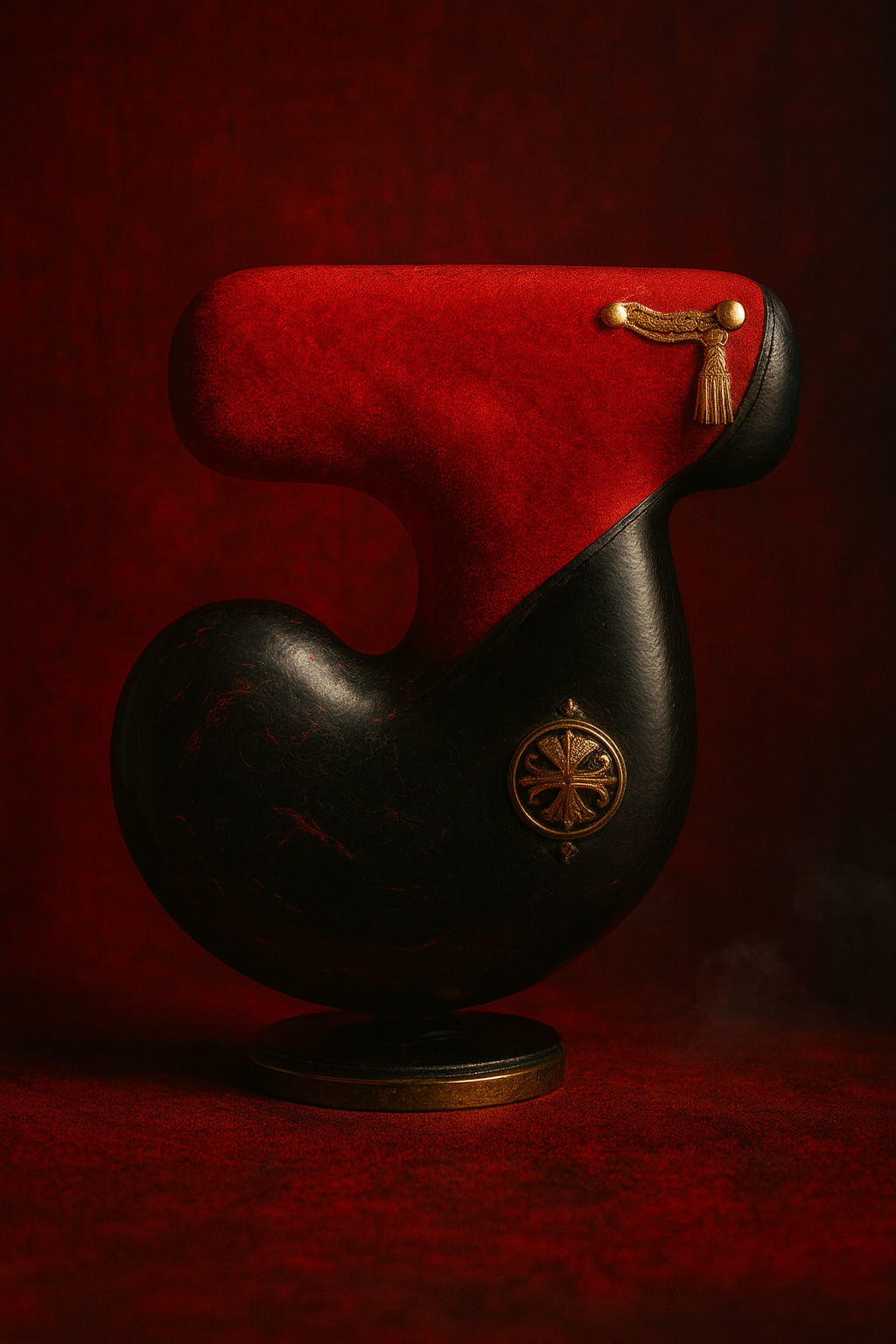 上部は軍服を想わせる赤ベルベットに金の肩章装飾、下部は冷徹な黒ラッカーに紋章メダリオン。