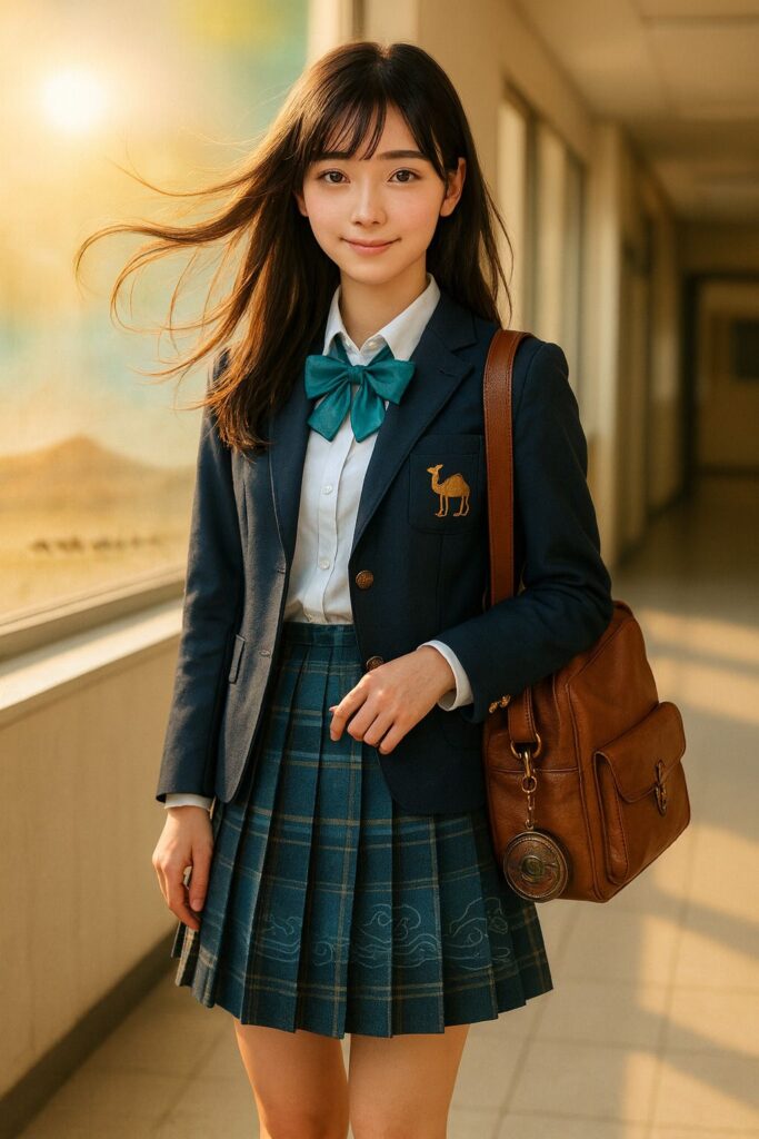 表情/雰囲気:窓からの陽光を受けて微笑み、シルクロードから来た転校生のような無既視感を漂わせる。